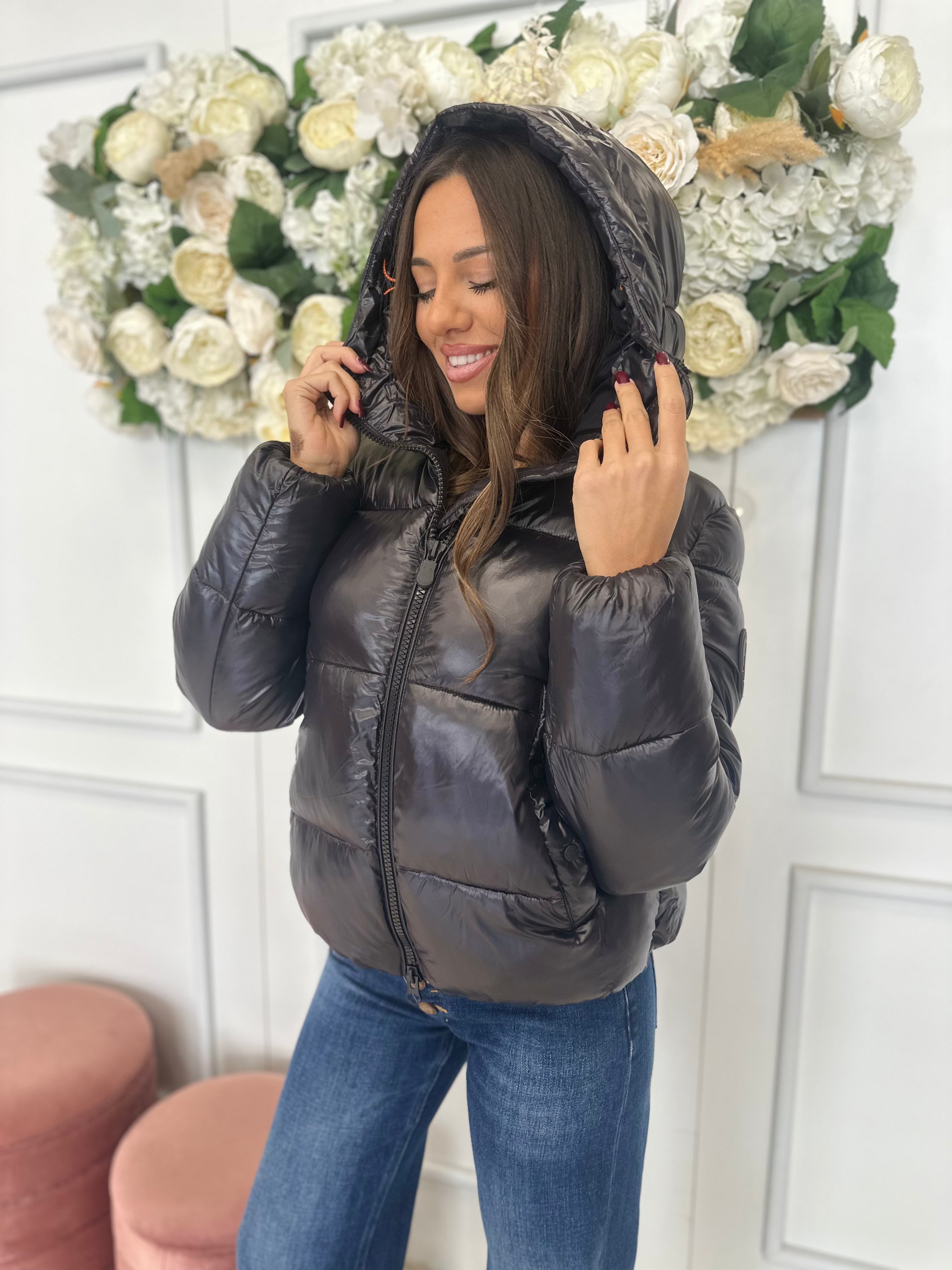 Il piumino donna animal free,conquista il guardaroba invernale con la sua finitura laqué e il collo alto con cappuccio che avvolge e protegge dal freddo. La zip centrale e i bottoni neri delle tasche aggiungono un tocco a contrasto, mentre il tirazip personalizzato e il logo rotondo sulla manica completano il design con dettagli distintivi Save The Duck.