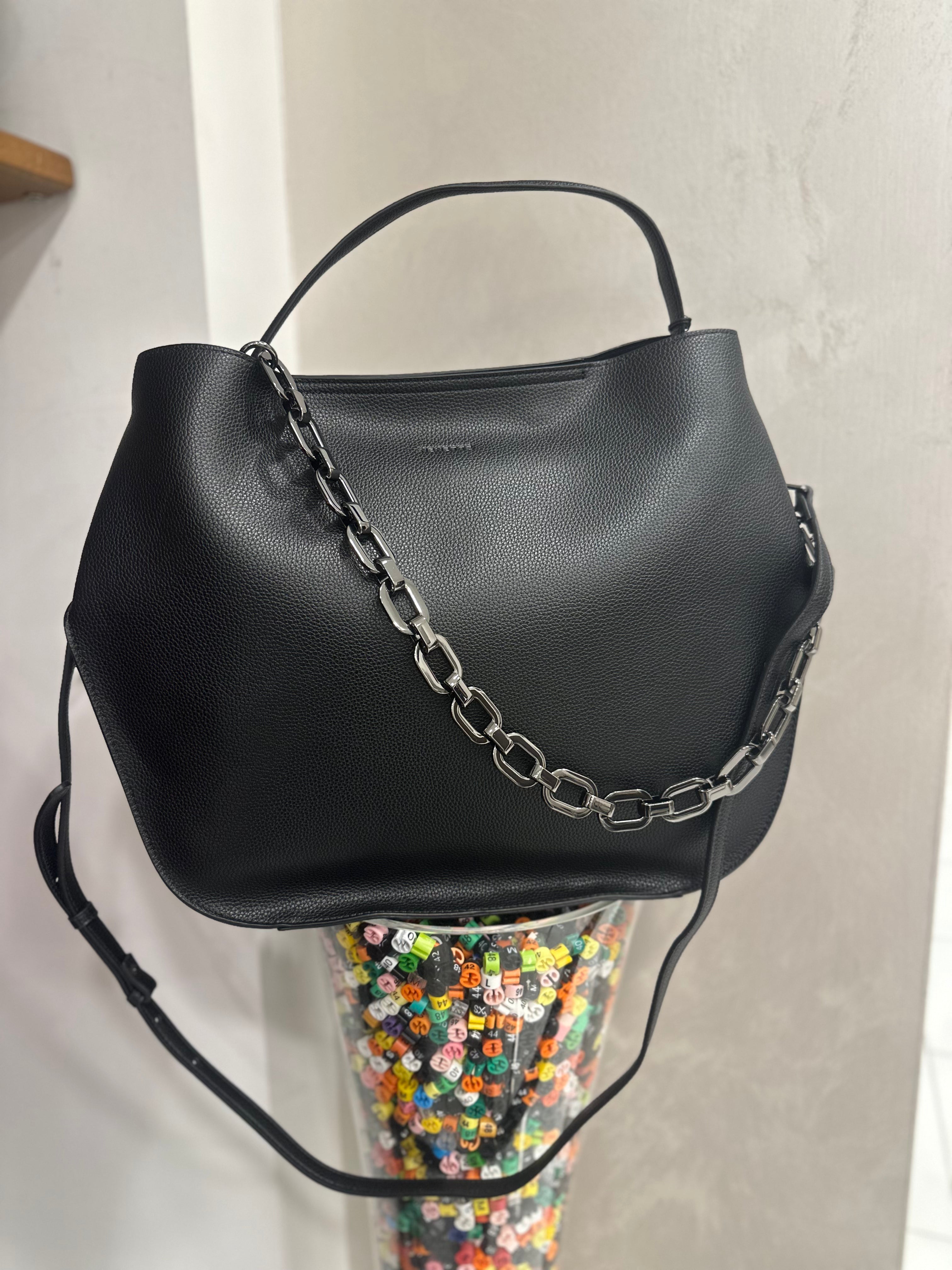 Completa di tracolla e catena.