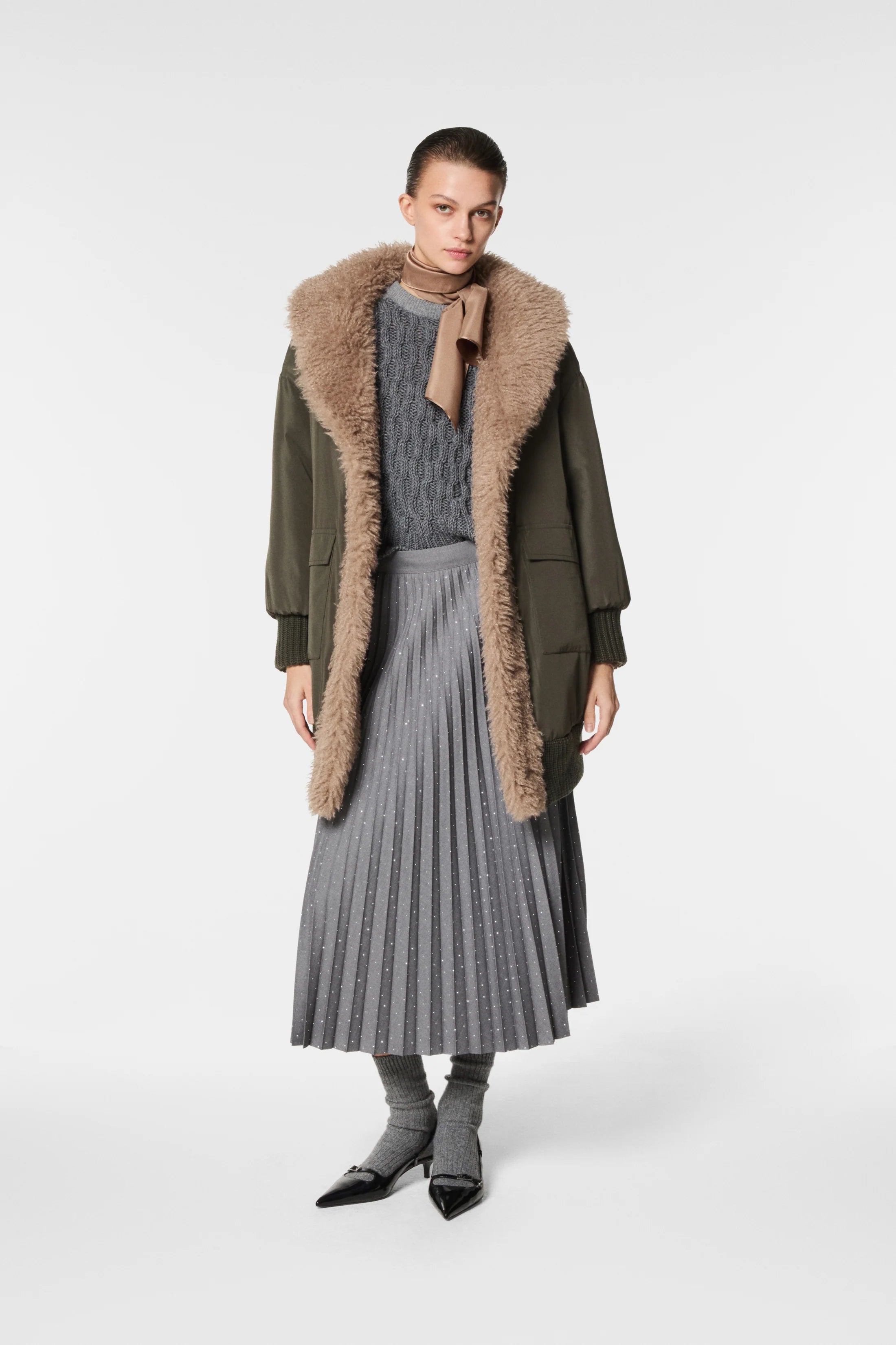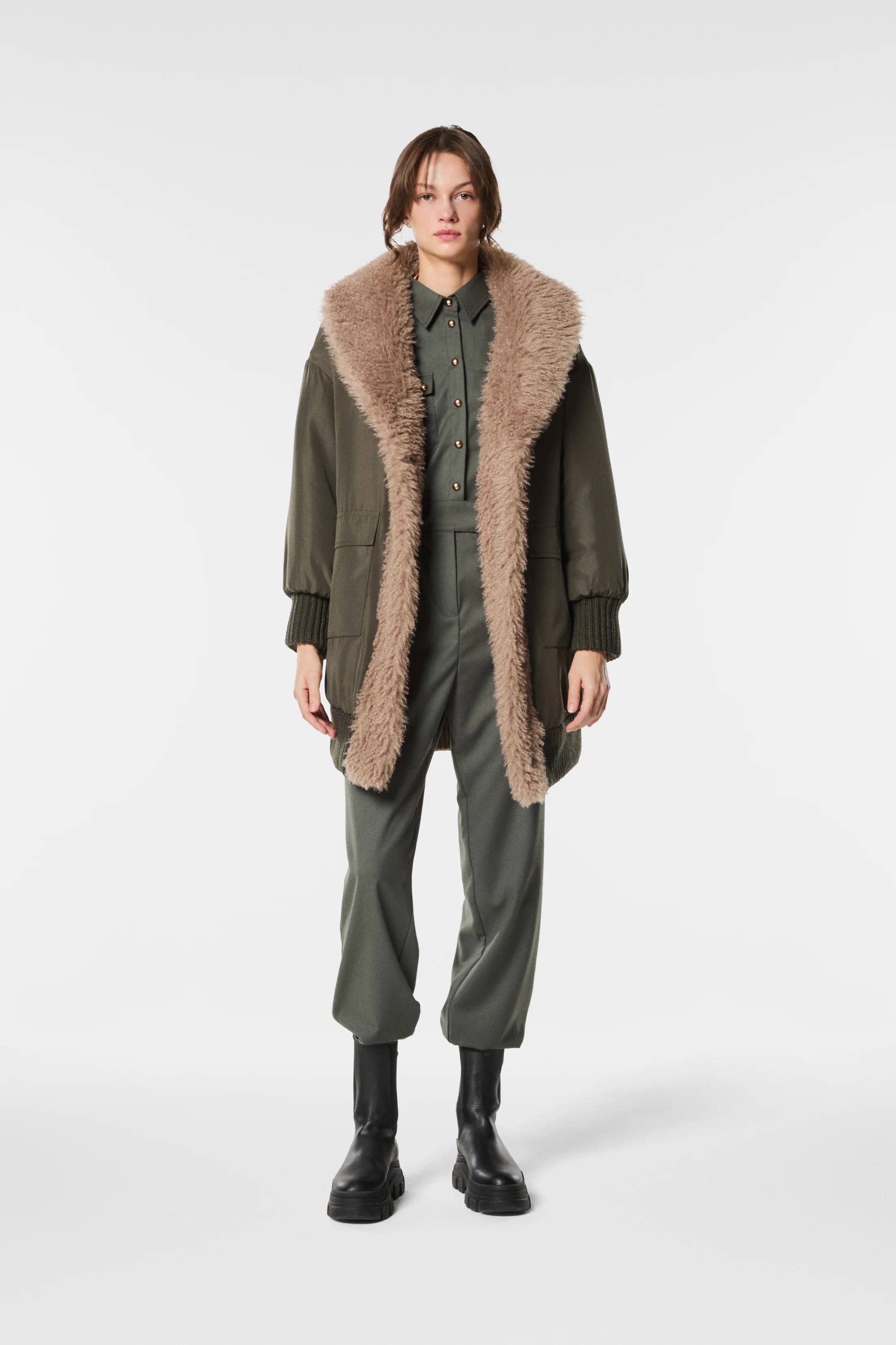 Un capo versatile e contemporaneo, perfetto per look casual-chic. Parka da un lato, nylon tecnico per un effetto moderno e leggero, dall’altro ecopelliccia curly per calore e stile. Reversibile e pratico, trasforma ogni outfit con un tocco sofisticato e confortevole, ideale da abbinare a pantaloni o gonne