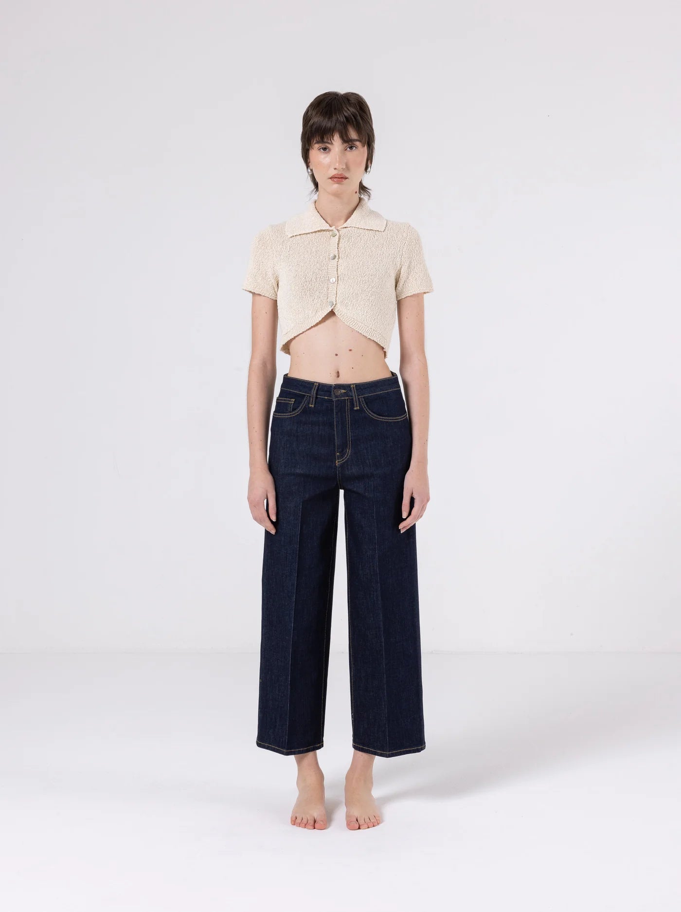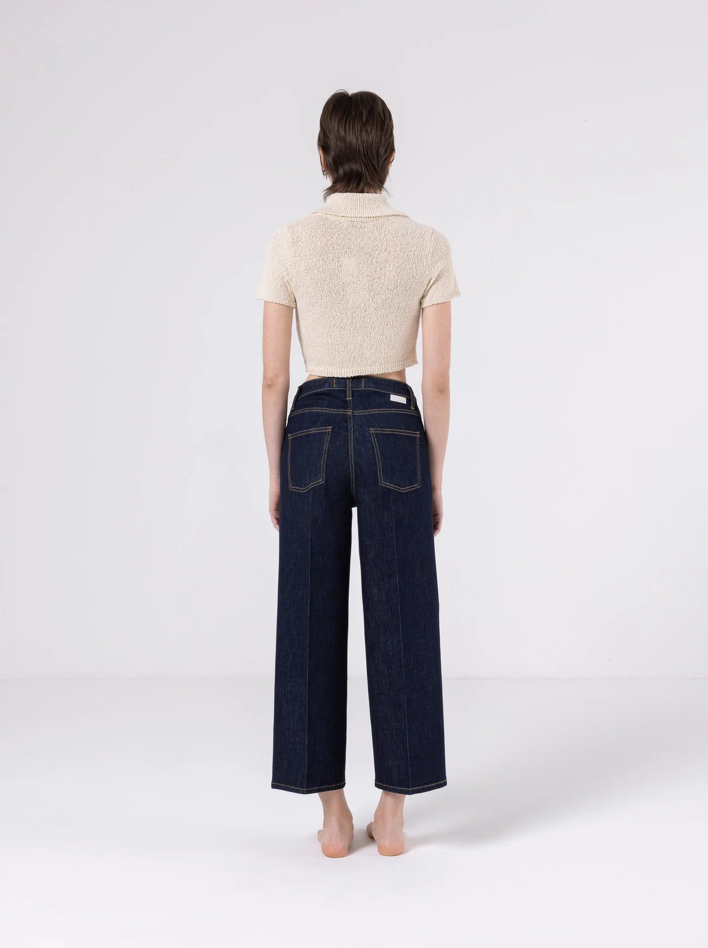 "Jeans wide leg: vita alta comoda e bella gamba; un filo lunghi, li ho accorciati."
