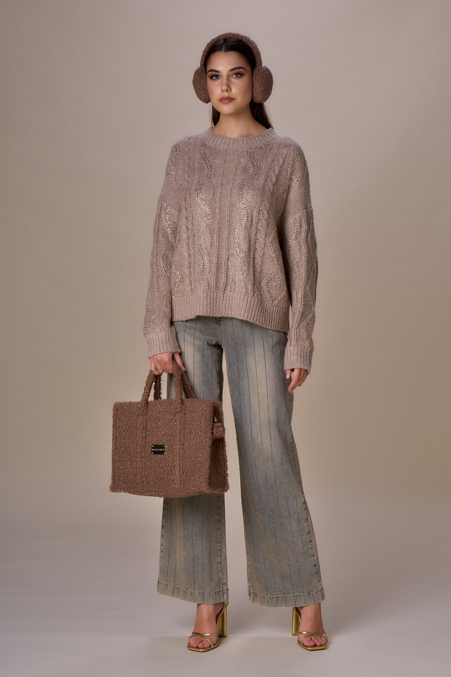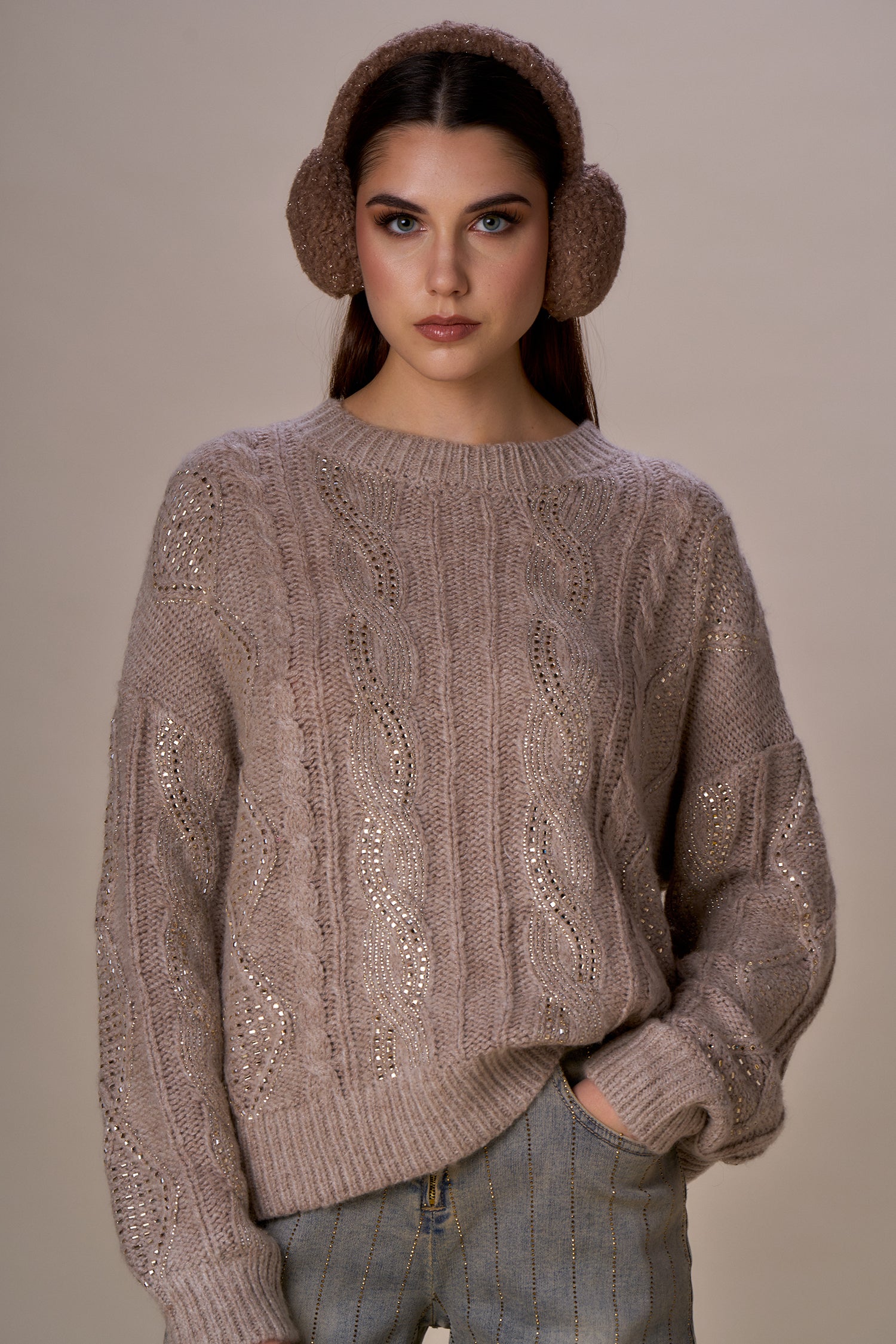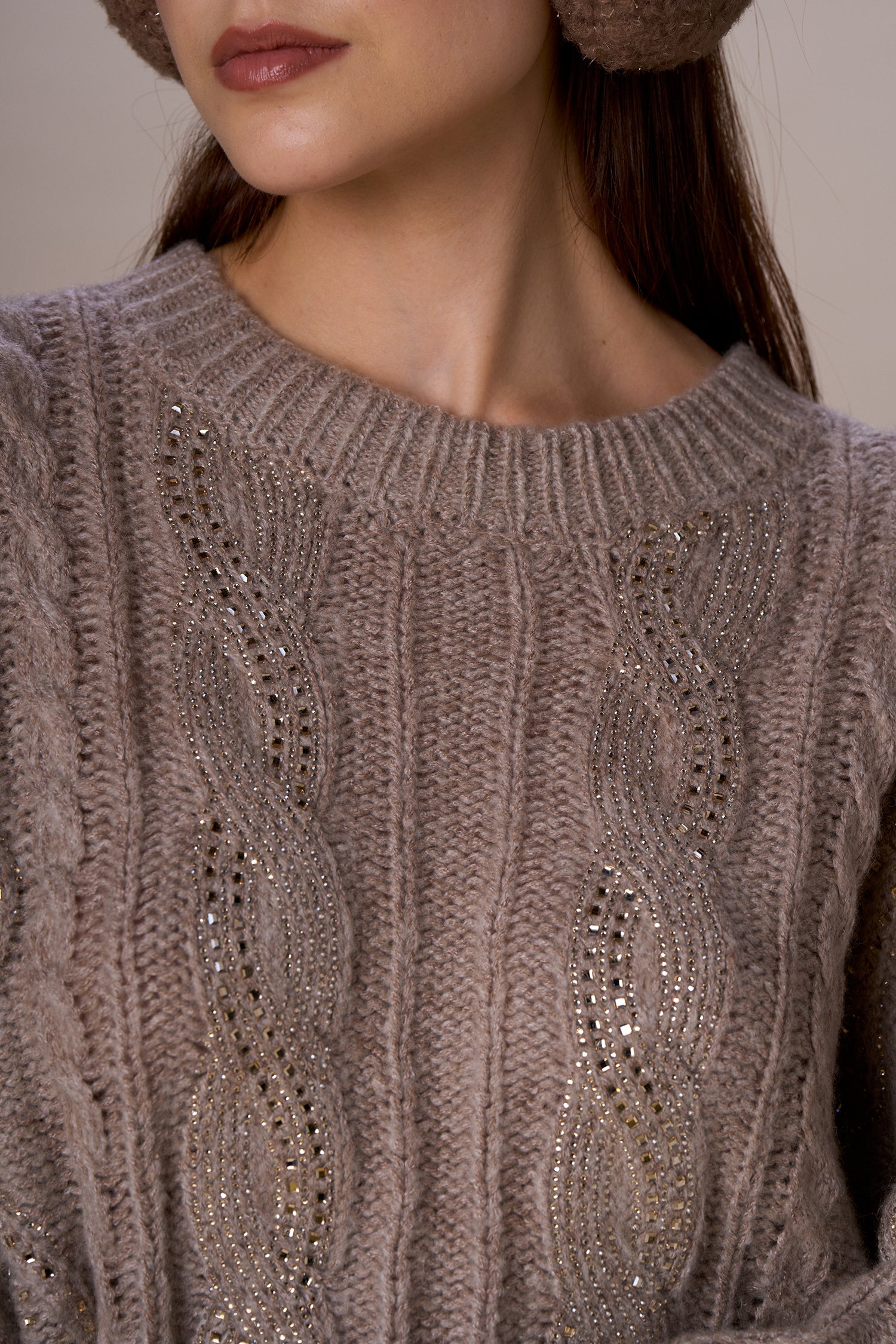 Maglioncino trecce con dettagli lurex ed applicazioni, vestibilità comoda