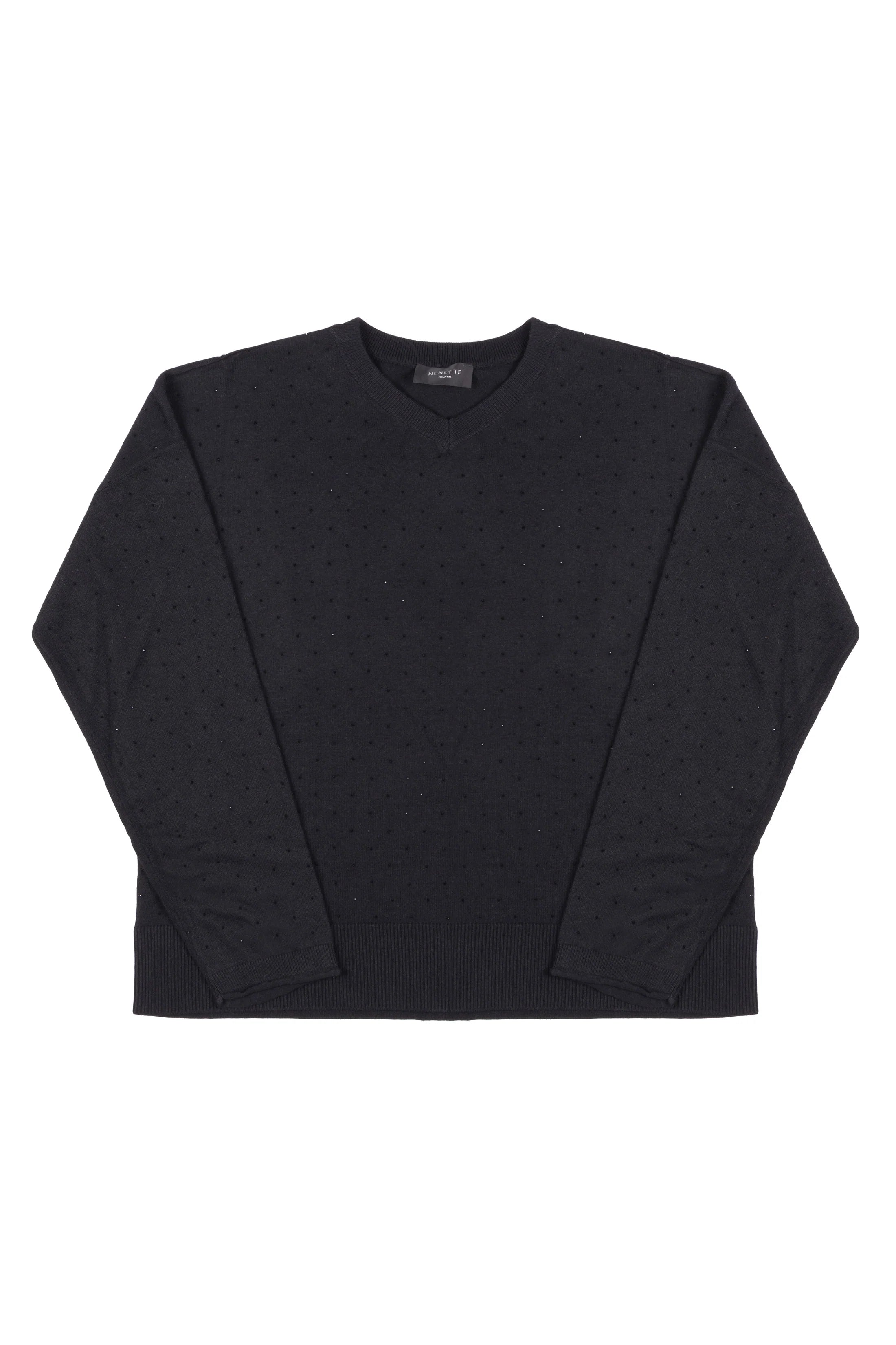Maglia girocollo interamente ricoperta di strass, scintillante e sofisticata. Un capo glamour che dona luce e stile, perfetto per rendere speciale ogni look.