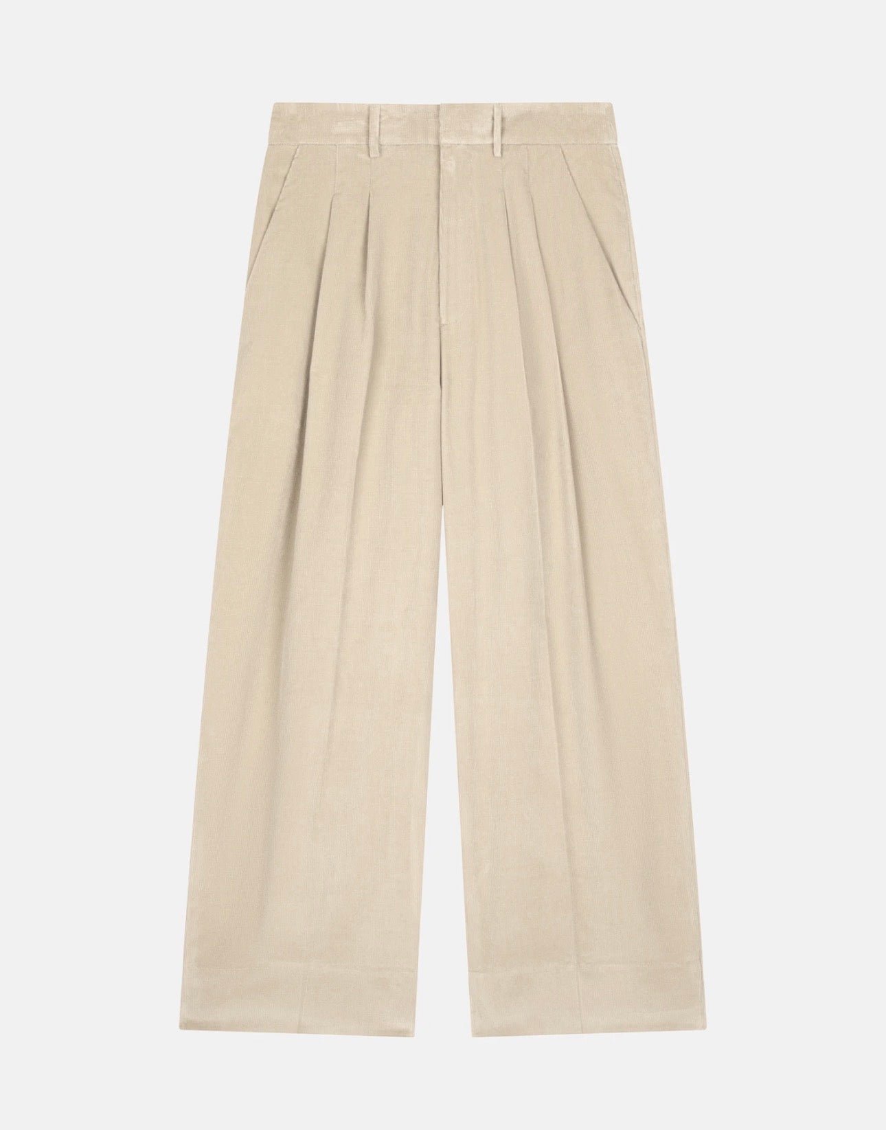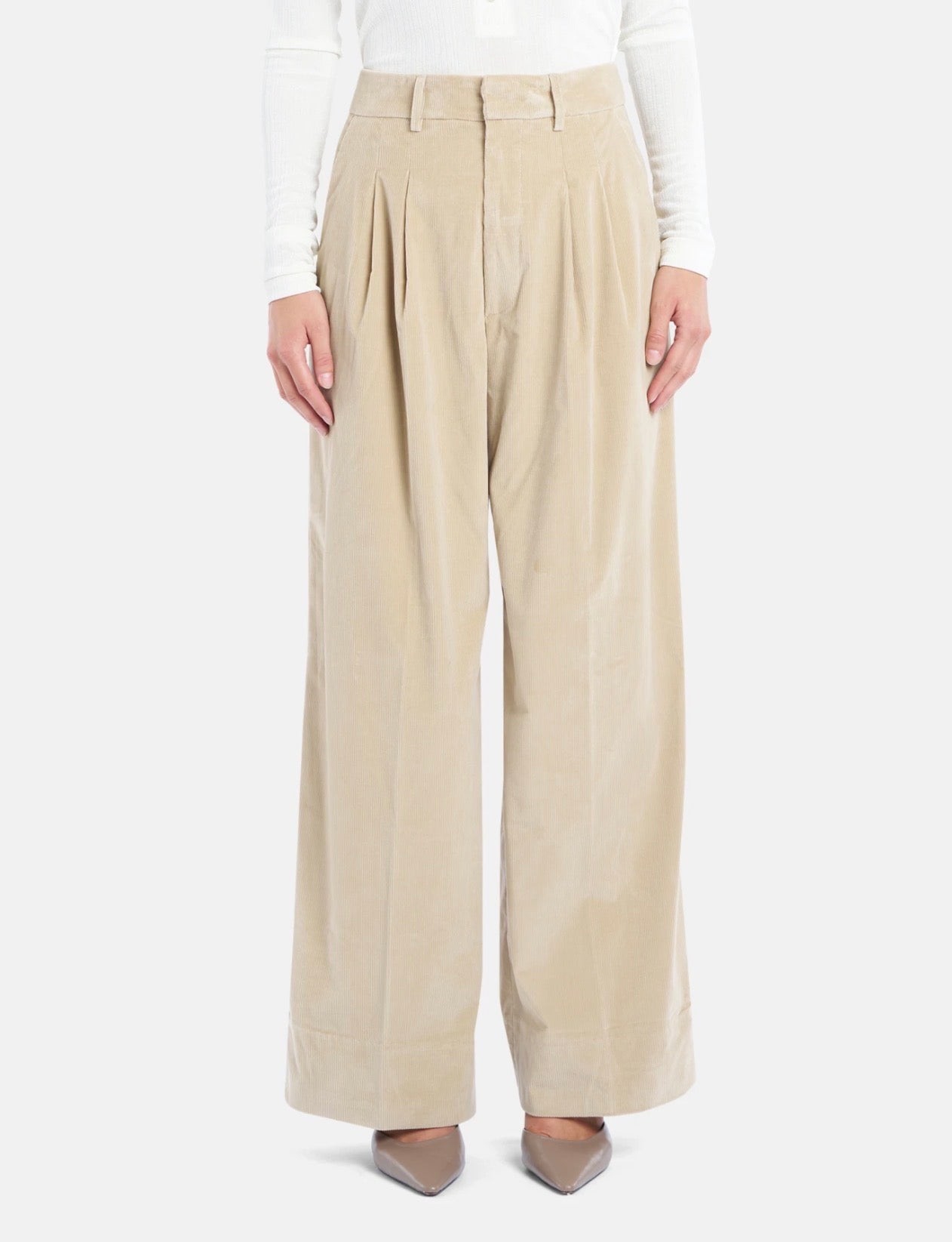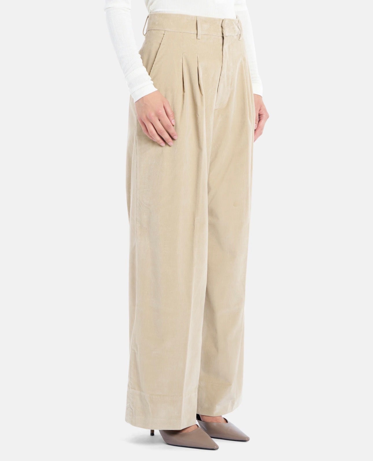 PANTALONI ELOISE WIDE LEG CHINO, VITA BASSA, DOPPIE PINCES SUL DAVANTI, TASCHE A FILETTO POSTERIORI. CORDUROY. LOGO DONDUP. MADE IN ITALY
